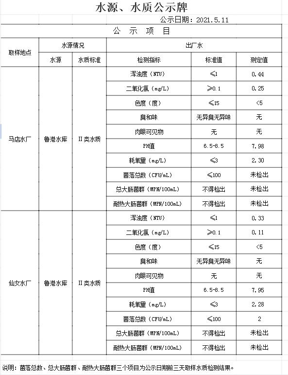 水源、水質(zhì)公示牌(5月11日)