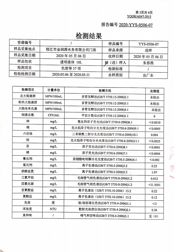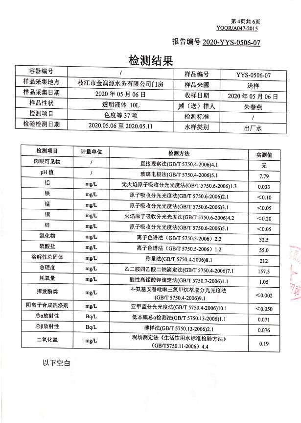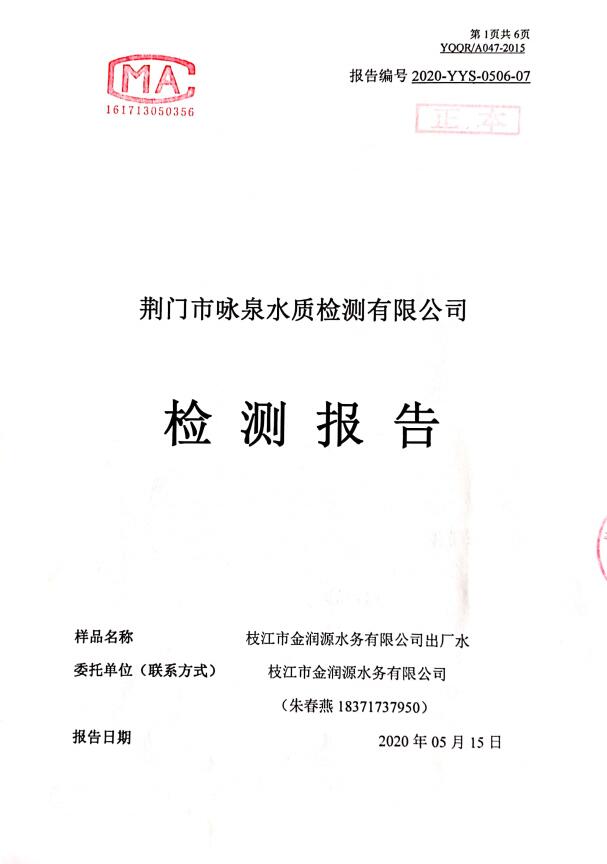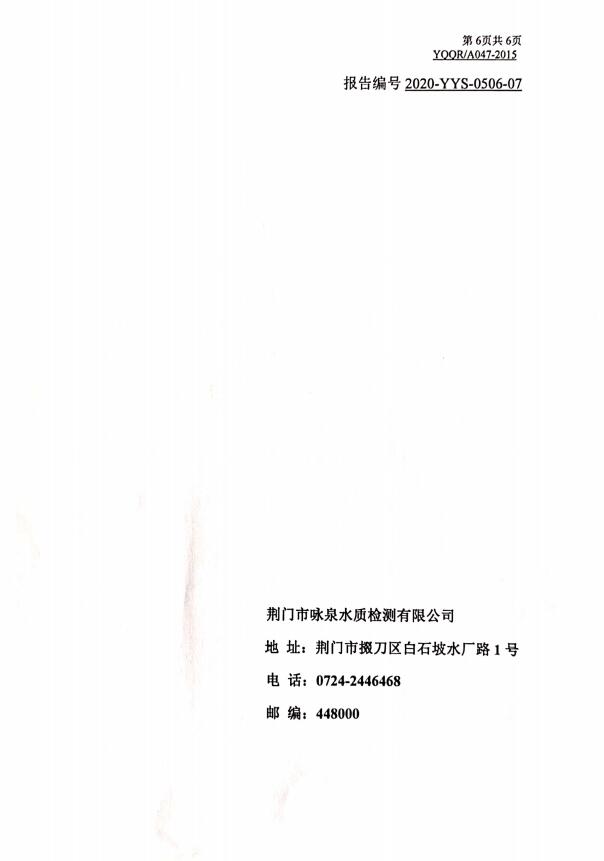 - 上一篇:2020年6月水質(zhì)檢測報告 2020/6/20