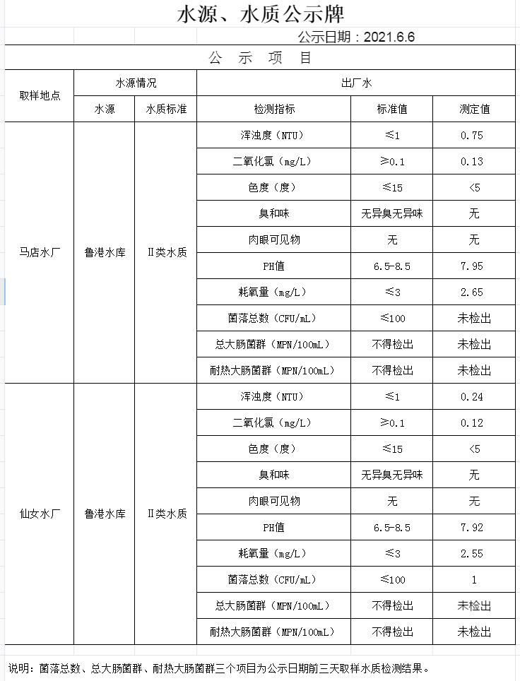 水源、水質(zhì)公示牌(6月6日)