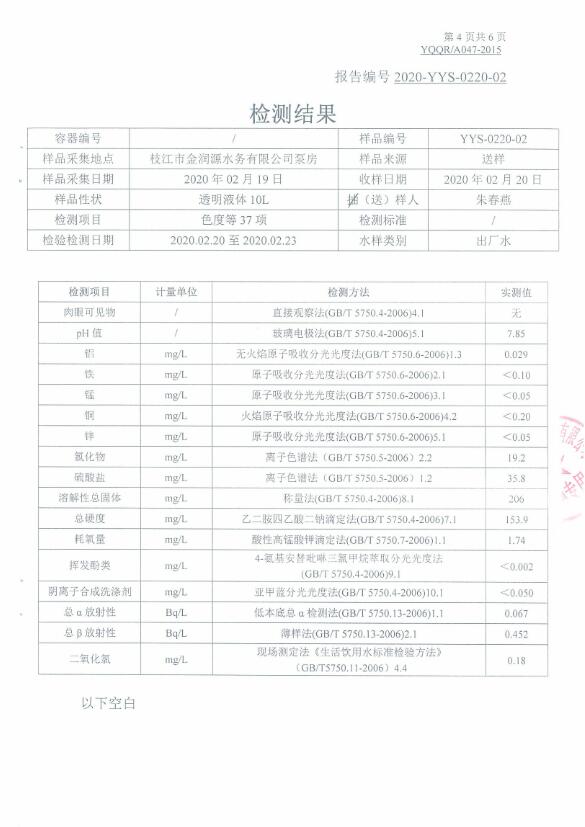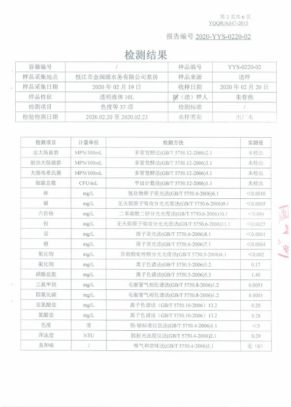 2020年2月水質(zhì)檢測報告