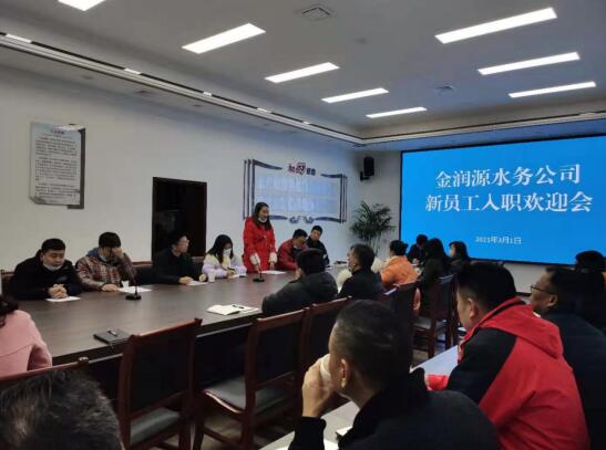 春暖花開(kāi),神采奕奕新人來(lái)。2021年3月1日上午,金潤源水務(wù)公司舉行了新員工入職歡迎會(huì ),公司全體班子及中層正副職29人參加,金潤源集團公司組織人事室副主任辛海恩出席會(huì )議。