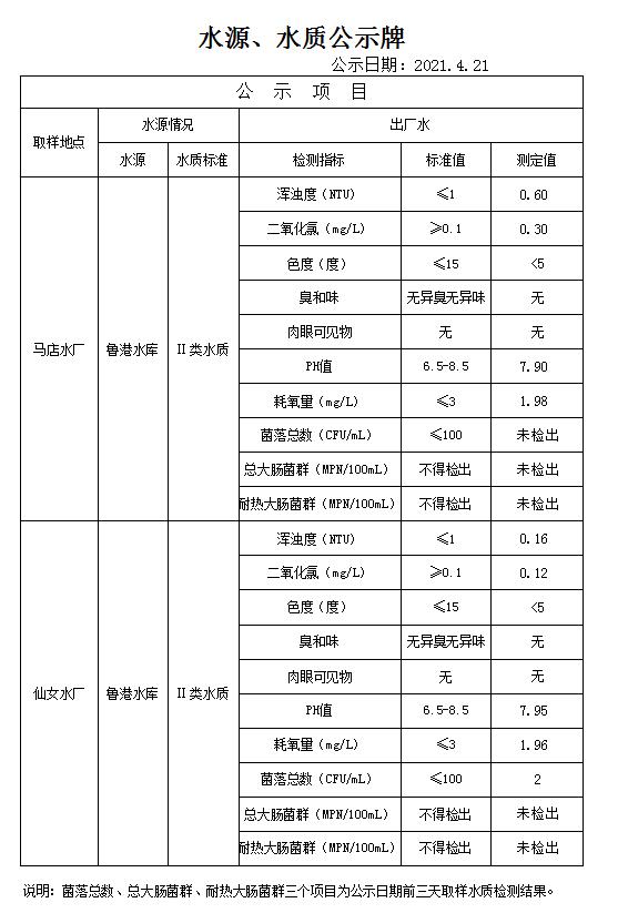 水源、水質(zhì)公示牌(4月21日)