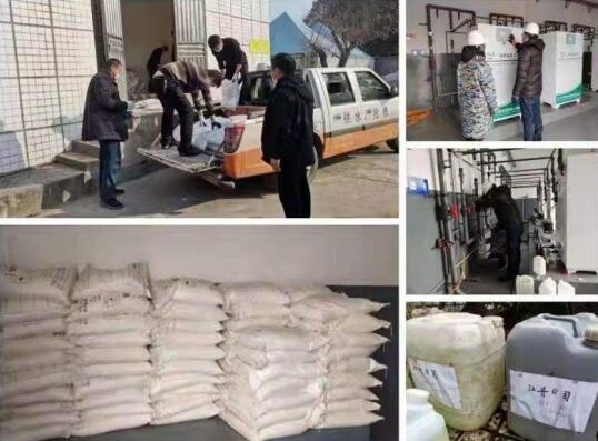 2月5日下午,水務(wù)公司在總經(jīng)理方平的帶領(lǐng)下,組織部分身強力壯的職工自己動(dòng)手,利用生產(chǎn)消毒設備成功制備次氯酸鈉消毒溶液400升,從城區相關(guān)化工企業(yè)籌集氯酸鈉消毒原料1.5噸,這不僅保障了自來(lái)水生產(chǎn)之所需,還在滿(mǎn)足自身疫情防控消毒需要的同時(shí)向其它單位提供援助,彰顯水務(wù)公司在疫情防控關(guān)鍵時(shí)期應有的責任與擔當。這也是自疫情防控工作啟動(dòng)以來(lái),水務(wù)公司不等不靠,自力更生,利用自身行業(yè)優(yōu)勢,積極協(xié)調相關(guān)廠(chǎng)商,先后從武漢等地籌集口罩5000只、醫用手套1000雙、體溫計及電子測溫儀6只、消毒液50瓶等疫情防控物資后的又一實(shí)舉。