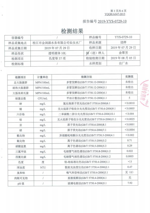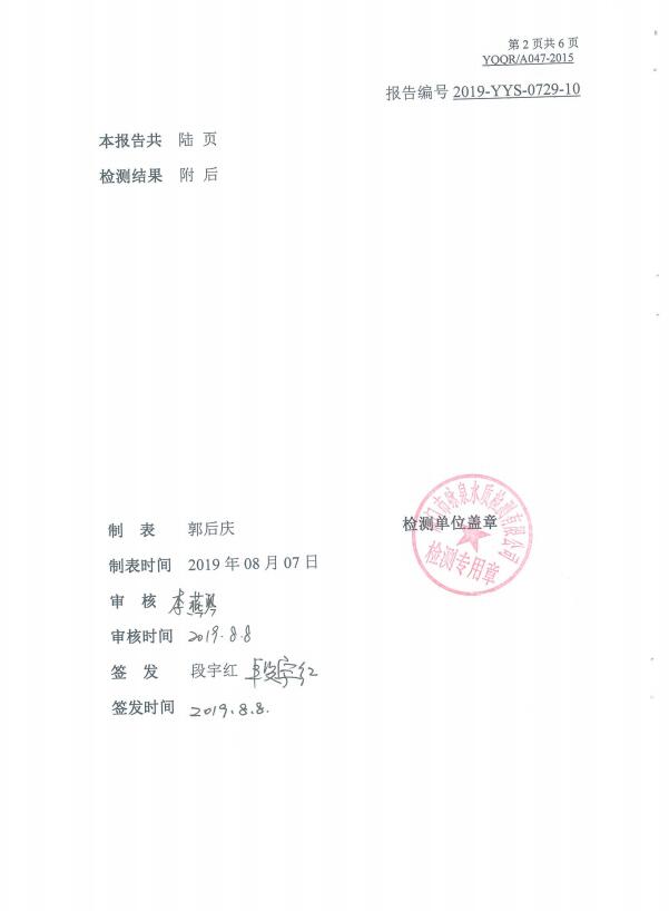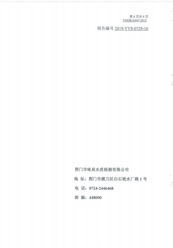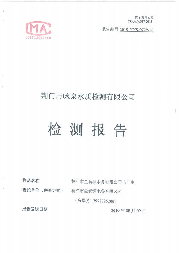 2019年8月水質(zhì)檢測報告