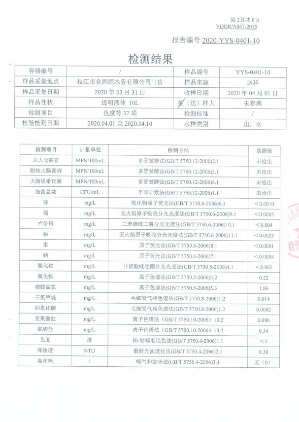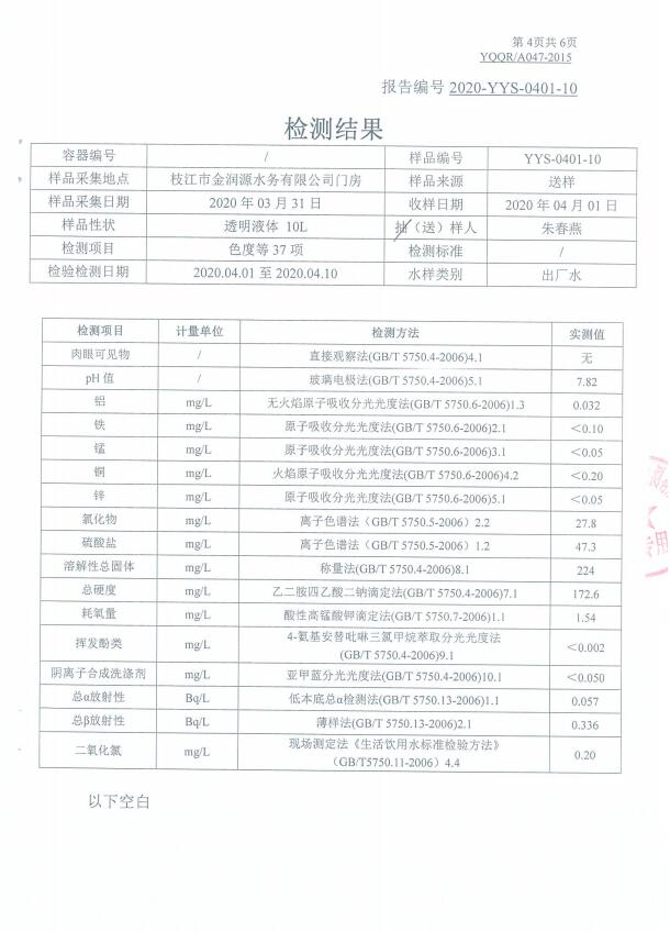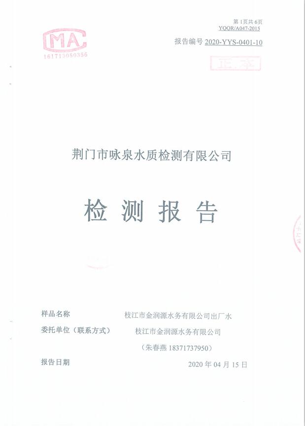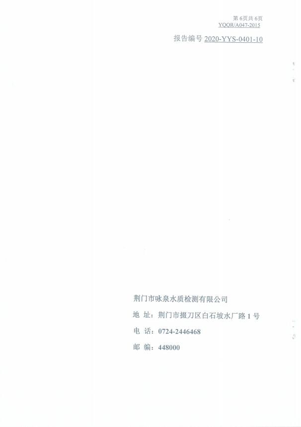 - 上一篇:2020年5月水質(zhì)檢測報告 2020/5/20