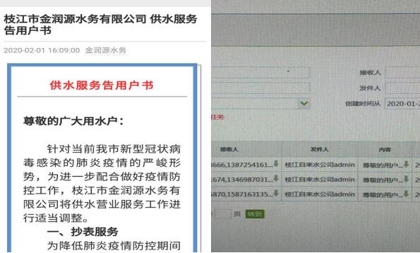 金潤源水務(wù)公司持續強化疫情防控期間生產(chǎn)生活用水供給,對全市所有用戶(hù)不停水、不催收、不收取任何違約金;對企業(yè)暫時(shí)無(wú)力繳納水費的,不斷供、不限供、延長(cháng)繳納期。于2020年2月1日在公司微信公眾號發(fā)布《供水服務(wù)告用戶(hù)書(shū)》,并通過(guò)短信平臺發(fā)送信息19000余條,承諾:“在疫情防控期間,不計收欠費違約金,不對欠費用戶(hù)停水催收,全力保障民生用水”。