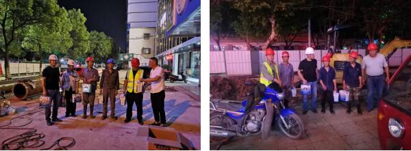 6月29日晚10點(diǎn),水務(wù)公司工會(huì )主席許文光及工會(huì )委員一起深入工程施工一線(xiàn),慰問(wèn)仍然奮戰在一線(xiàn)的職工及施工人員,并給大家送上慰問(wèn)品,叮囑大家一定要注意安全,勞逸結合,在保證工程進(jìn)度同時(shí),更要保護好自己的身體。