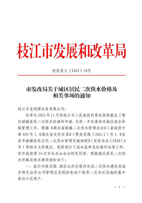 市發(fā)改局關(guān)于城區居民二次供水價(jià)格及 相關(guān)事項的通知