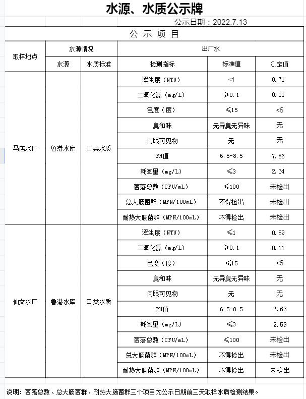 2022年7月13日水質(zhì)公告