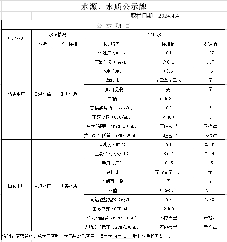 2024年4月4日水質(zhì)公告