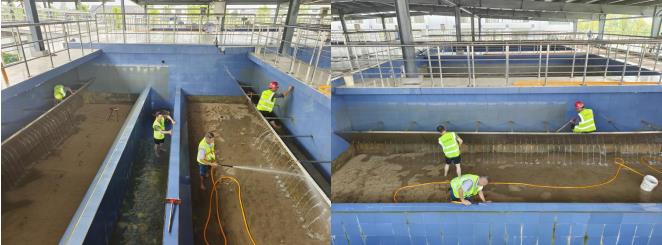 二是加強原水防控,確保用水安全。對濾池、沉淀池進(jìn)行了全面清洗、消毒。根據實(shí)際情況和相關(guān)規定要求,制定科學(xué)清洗方案,在確保安全生產(chǎn)的前提下,對濾池、沉淀池采用邊刷邊沖的方式進(jìn)行徹底清洗,確保不放過(guò)任何一個(gè)死角,清洗完成后,還對池內進(jìn)行消毒作業(yè)。