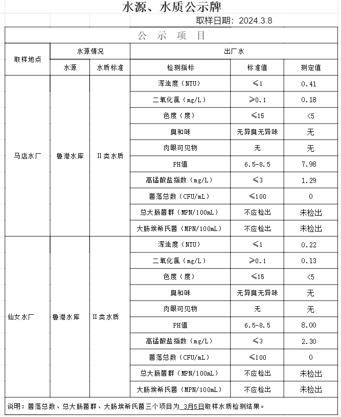 2024年3月8日水質(zhì)公告