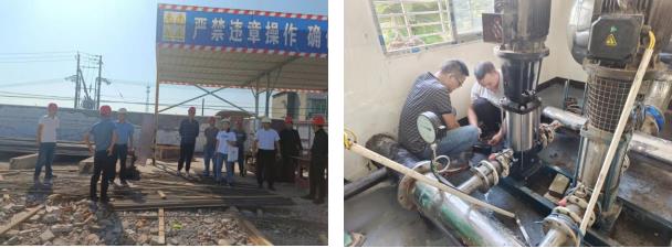 9月29日,水務(wù)公司總經(jīng)理方平、分管安全副總經(jīng)理許文光帶隊深入馬店水廠(chǎng)、仙女水廠(chǎng)、百里洲鎮水廠(chǎng)遷建項目現場(chǎng),對供水設備運行和項目現場(chǎng)施工等安全工作進(jìn)行再檢查。在了解到仙女老周場(chǎng)加壓泵站因水泵老舊存在供水安全隱患后,在做好各項計劃預案后,現場(chǎng)督促仙女水廠(chǎng)將老周場(chǎng)加壓泵站老舊水泵進(jìn)行更換,保障居民節日期間保供水更要保安全;在百里洲鎮水廠(chǎng)遷建項目施工現場(chǎng),檢查項目施工設備及操作施工具體事項,指導項目部加強對施工現場(chǎng)物料的擺放和設備安全性檢查,確保節日期間抓進(jìn)度更要抓安全。
