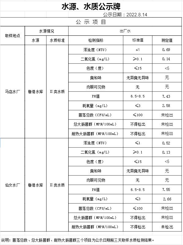2022年8月14日水質(zhì)公告