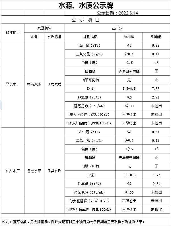 2022年6月14日水質(zhì)公告
