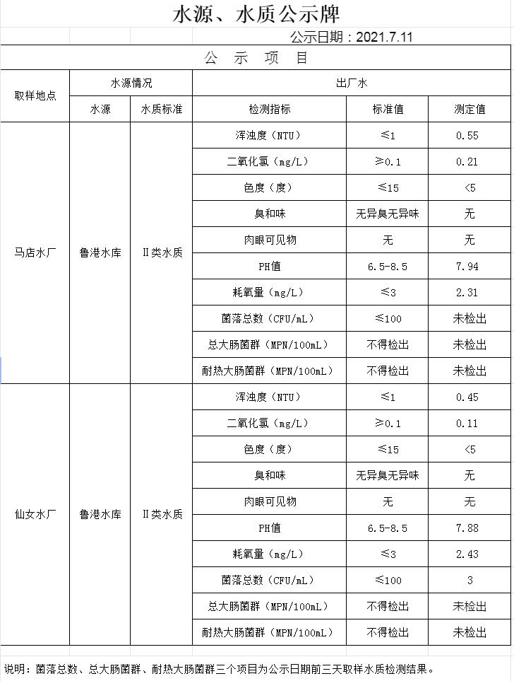 2021年7月11日水質(zhì)公告