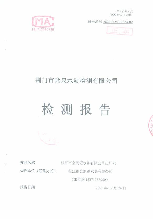 2020年2月水質(zhì)檢測報告