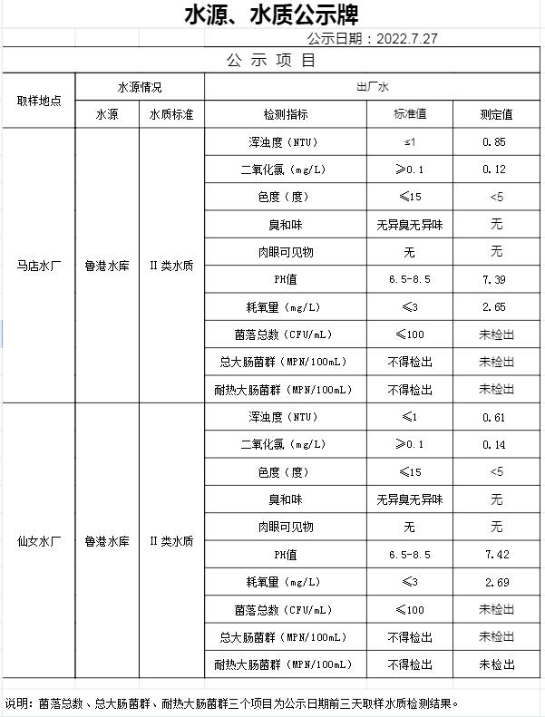 2022年7月27日水質(zhì)公告