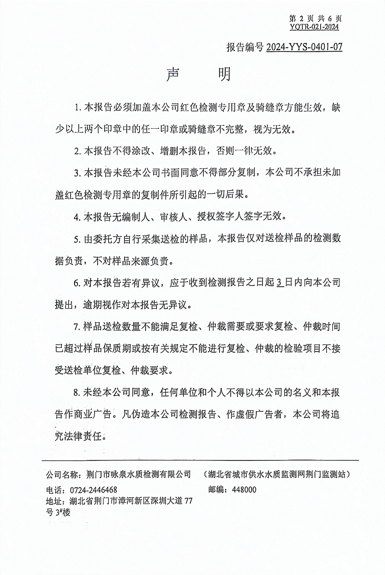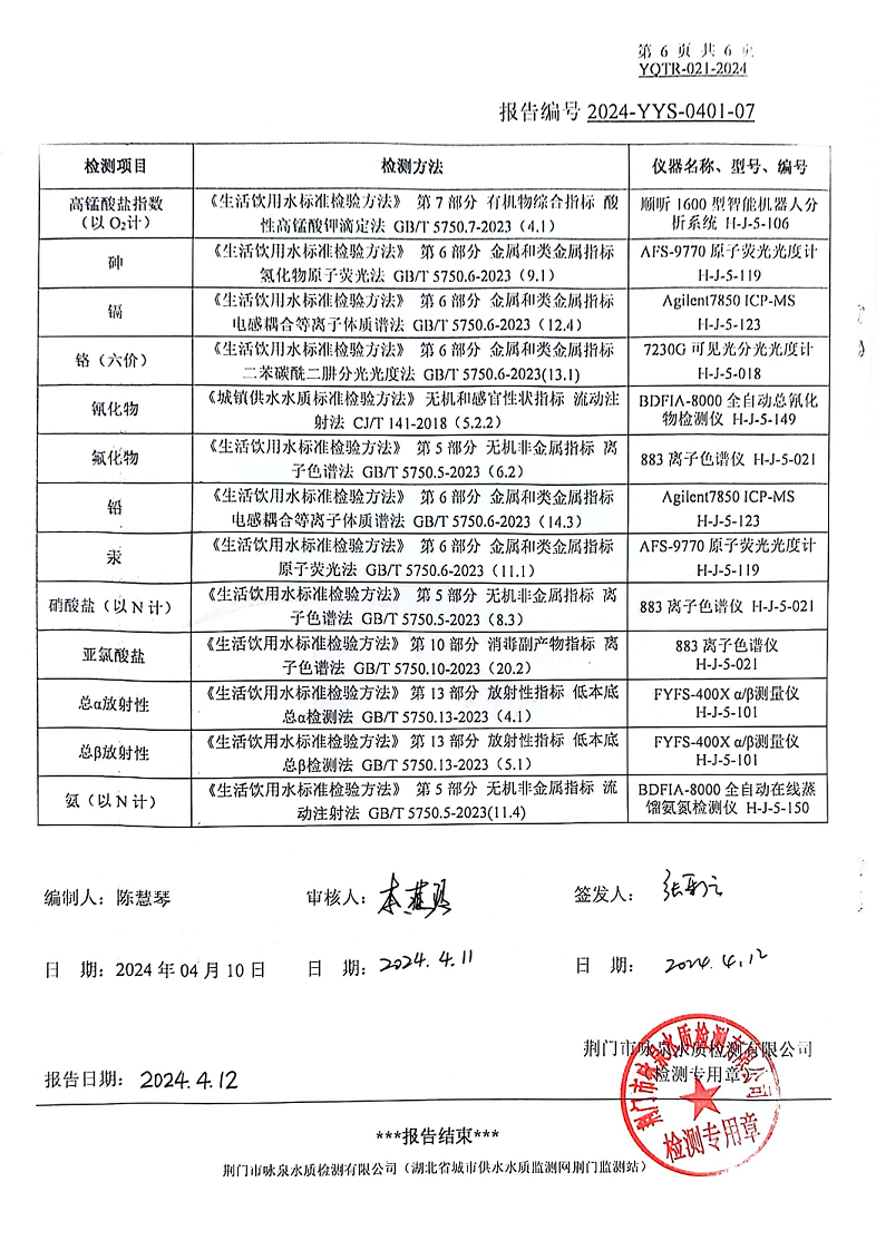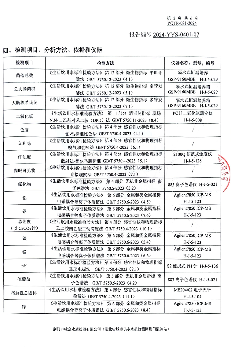 2024年4月出廠(chǎng)水水質(zhì)報告