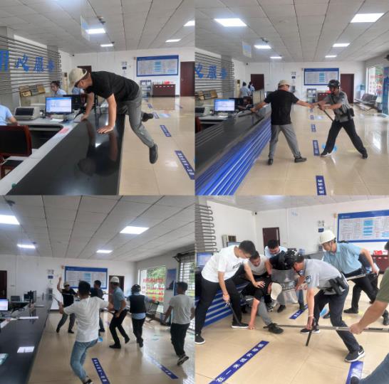 上午9時(shí),演練活動(dòng)正式拉開(kāi)帷幕。安全管理部向反恐防暴應急小組人員示范講解防暴盾牌、伸縮腳叉等防暴器材正確使用方法,指導員工在人身安全受到威脅或傷害時(shí),正確使用防護裝備保護自己和制止違法犯罪行為。