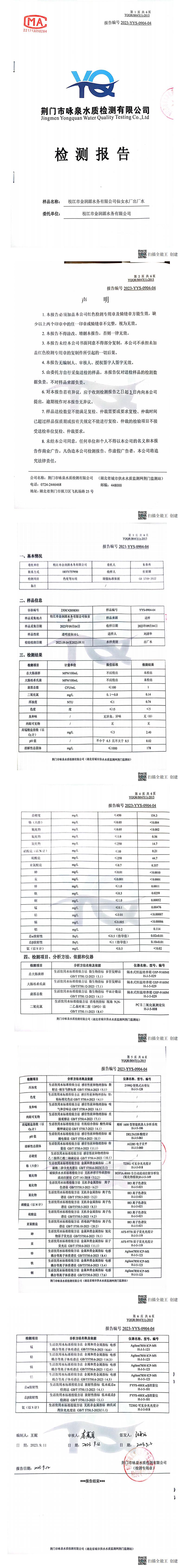 2023年9月水質(zhì)檢測報告