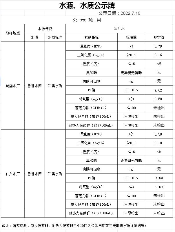 2022年7月16日水質(zhì)公告