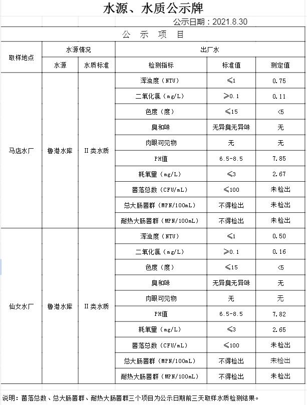 2021年8月30日水質(zhì)公告