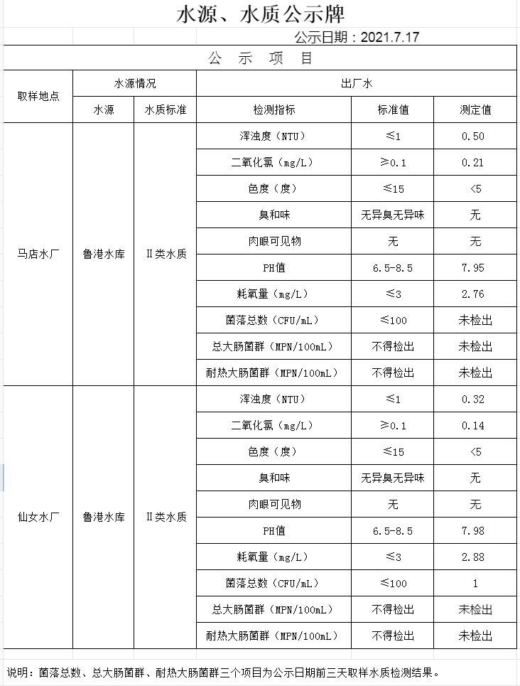 2021年7月17日水質(zhì)公告