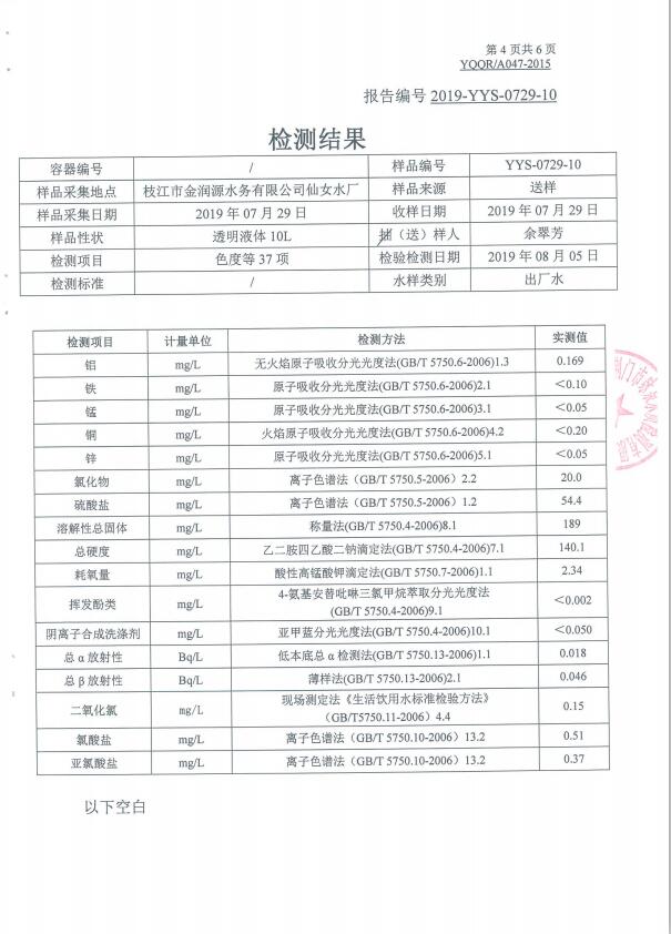 2019年8月水質(zhì)檢測報告