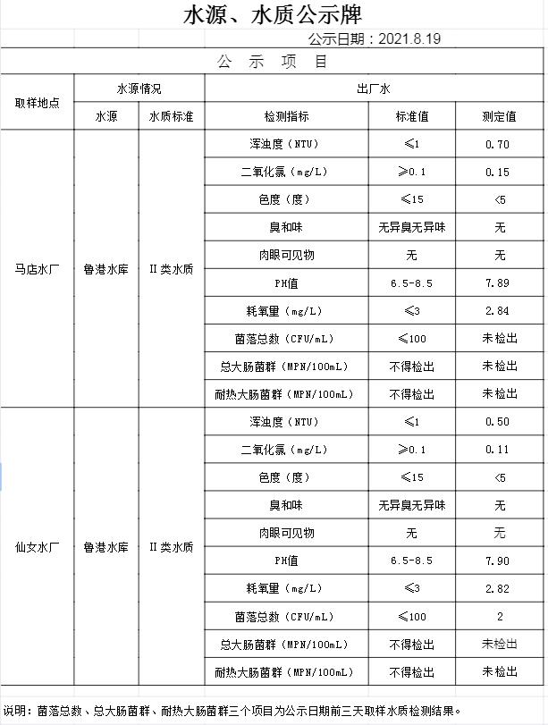 2021年8月19日水質(zhì)公告
