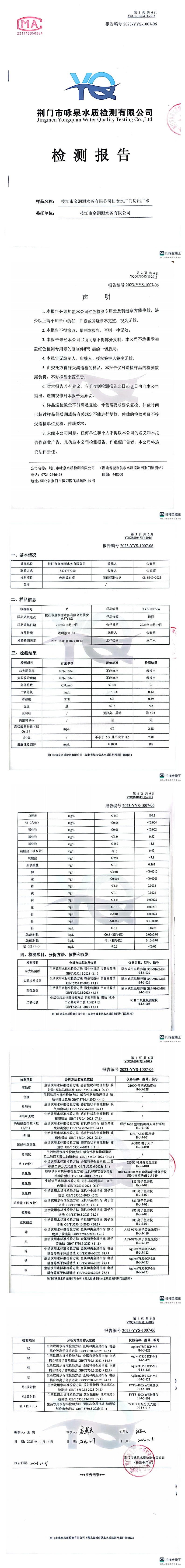 2023年10月水質(zhì)公告