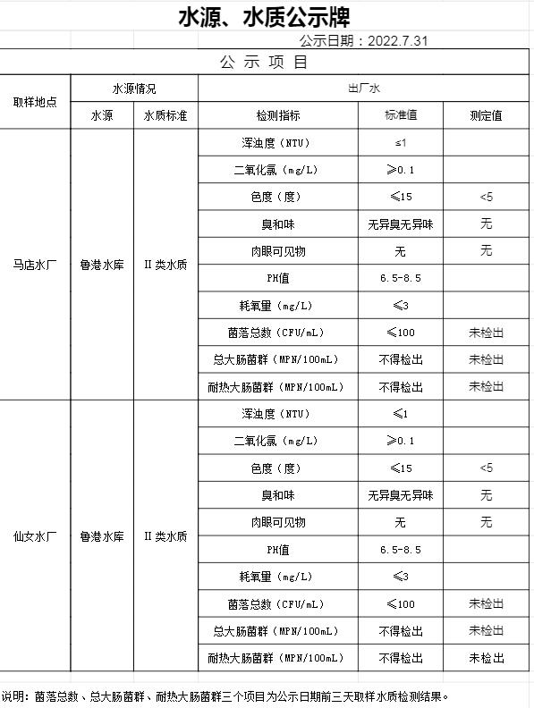2022年7月31日水質(zhì)公告