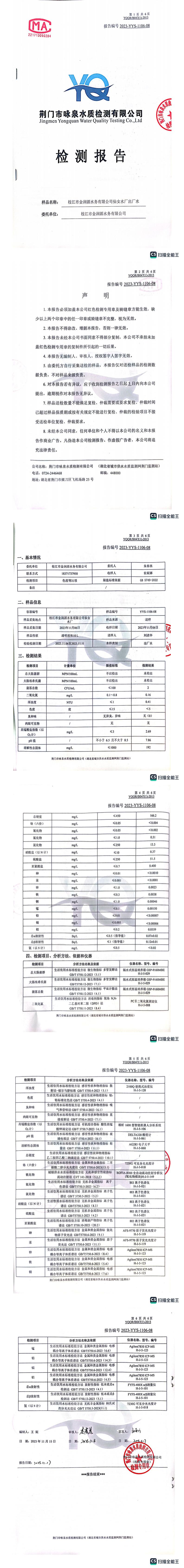 水質(zhì)檢測報告(2023年11月出廠(chǎng)水)