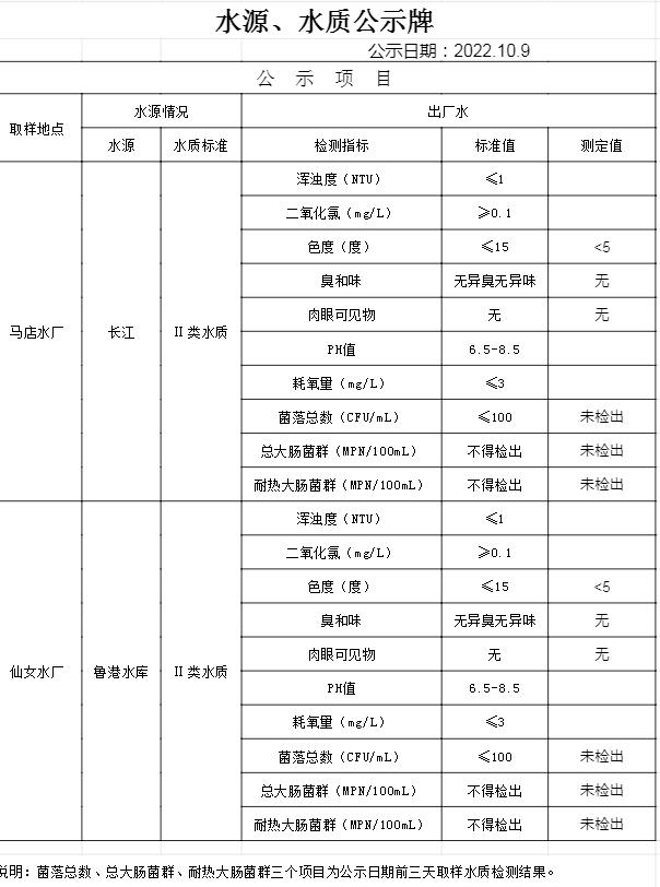 2022年10月9日水質(zhì)公告