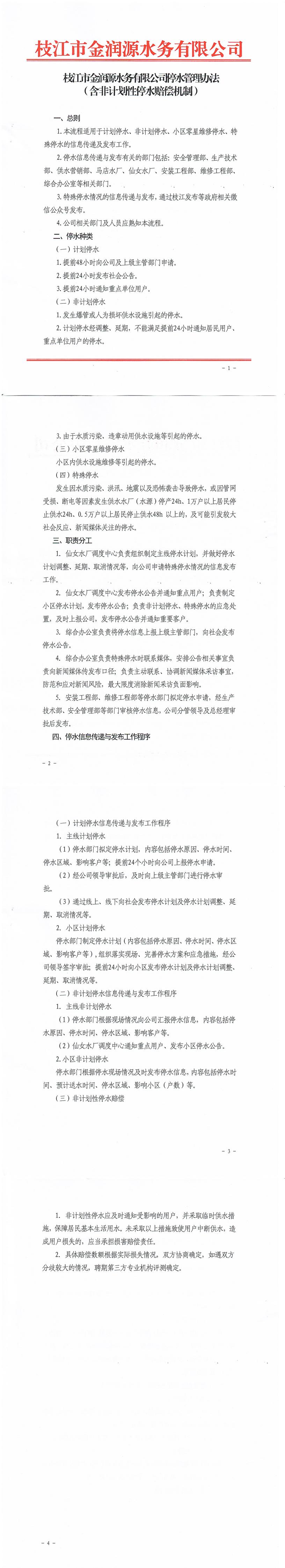 枝江市金潤源水務(wù)有限公司停水管理辦法(含非計劃停水賠償機制
