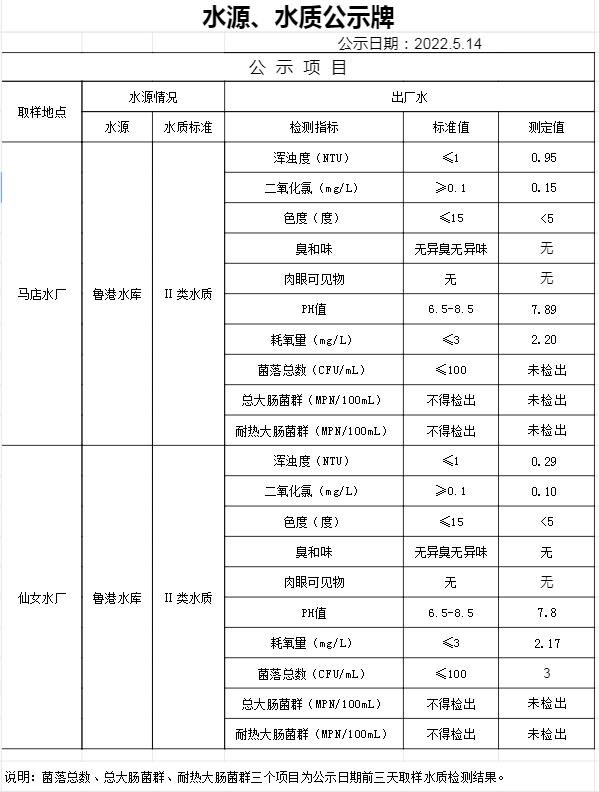 2022年5月14日水質(zhì)公告